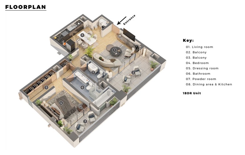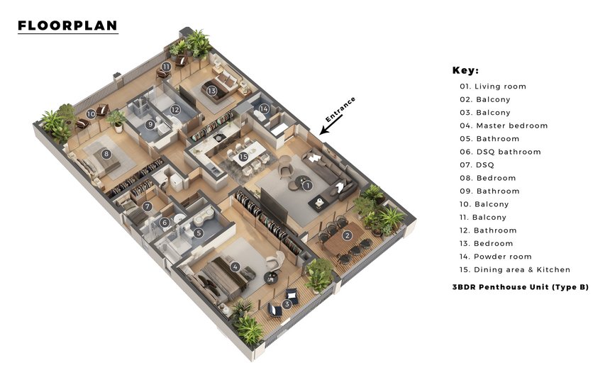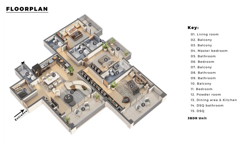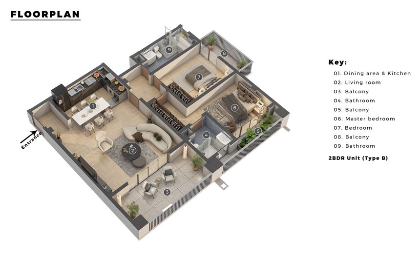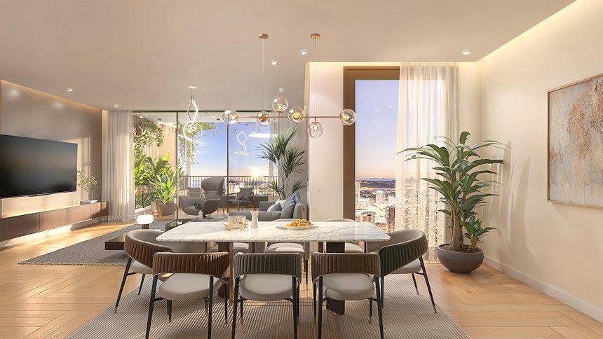 Buyers can choose from various exquisite living spaces, including spacious 1, 2, and 3-bedroom luxury apartments that boast modern amenities and stylish design elements.